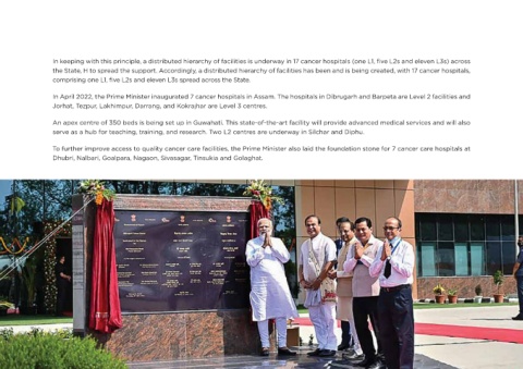 In April 2022, the Prime Minister inaugurated 7 cancer hospitals in Assam. The hospitals in Dibrugarh and Barpeta are Level 2 facilities and