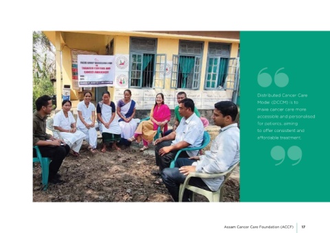 Distributed Cancer Care Model (DCCM) is to make cancer care more accessible and personalised for patients, aiming to offer consistent and affordable treatment. Assam Cancer Care Foundation (ACCF) 17