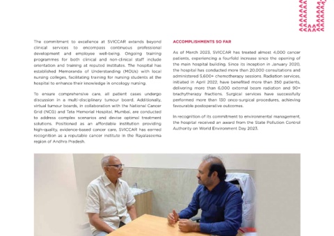 complete spectrum of cancer care services to the entire development and employee well-being. Ongoing training As of March 2023, SVICCAR has treated almost 4,000 cancer