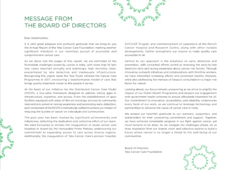 Recognising this urgent need, the Tata Trusts initiated the Cancer Care we have intensified screening e orts and promoted healthy lifestyles,