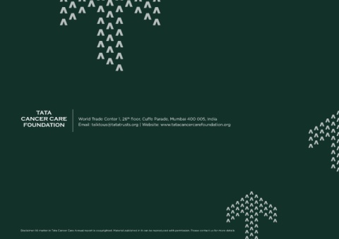 Disclaimer:All matter in Tata Cancer Care Annual report is copyrighted. Material published in it can be reproduced with permission. Please contact us for more details