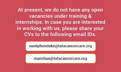 Under the cancer care training and internship programme, Tata Cancer Care Foundation (TCCF) offers training and internship opportunities for eligible candidates. We welcome interested individuals, to pursue the training program and TCCF internship with us.